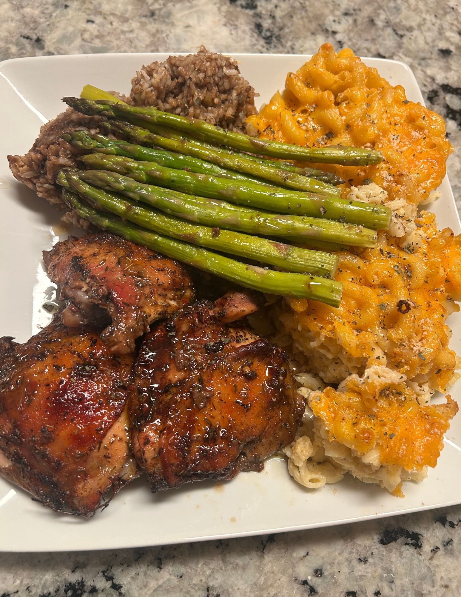 Fresh, tender asparagus spears roasted to perfection with olive oil and sea salt, then finished with a fragrant medley of slow-roasted garlic, cracked black pepper, and a touch of lemon zest. This side dish is both elegant and simple — offering a crisp-tender bite and bold, savory flavor that enhances any plate. Garnished with a sprinkle of flaky salt for the perfect finish.